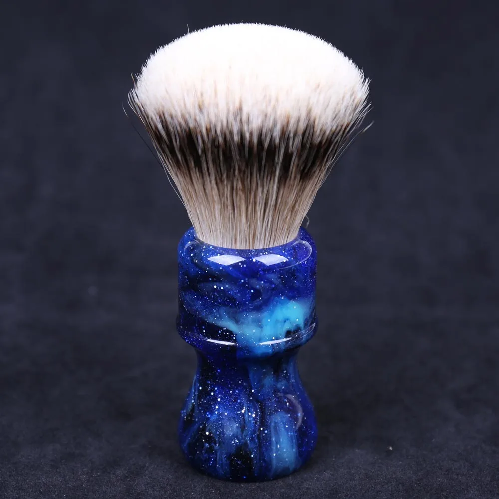 شراءمعلومات اضافية 24 مللي متر Yaqi غامضة الفضاء اللون مقبض Silvertip الغرير الشعر مروحة شكل عقدة الرجال فرشات الحلاقة